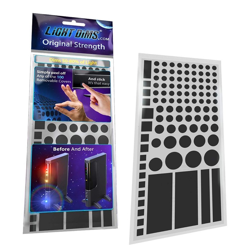 LightDims Original Strength - Light Dimming LED Covers / Light Dimming Sheets for Routers, Electronics and Appliances and More. Dims 50-80% of Light, in Retail Packaging.