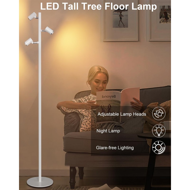 - 💡【3-Light Adjustable】Lightdot tree floor lamp features 3 adjustable rotating light head that complements industrial and modern décor, the Angle of the light head can be adjusted up and down by 180° and rotated horizontally by 350 ° according to your preference, meet your lighting needs in different directions, solving the inconvenience caused by fixed lamp head orientation. 3000K warm white light, creating a warm and romantic atmosphere.