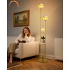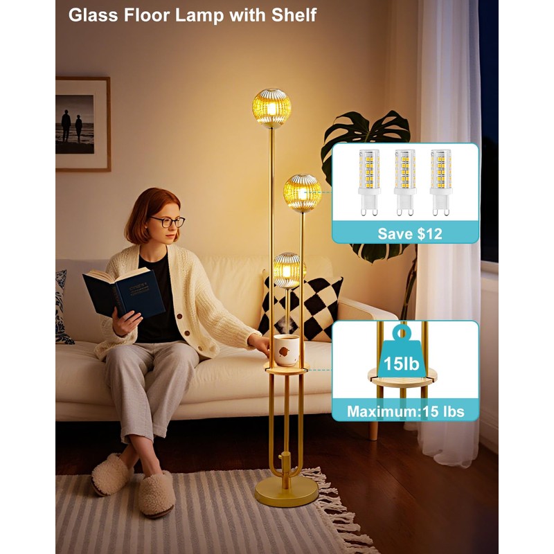 Lightdot Glass Floor Lamp with Shelf, 63IN Dimmable Mid Century Modern Gold Standing Lamps with 3 3000K Soft Warm White Bulbs Included, Globe Floor Lamp for Living Room/Wedding/Office
