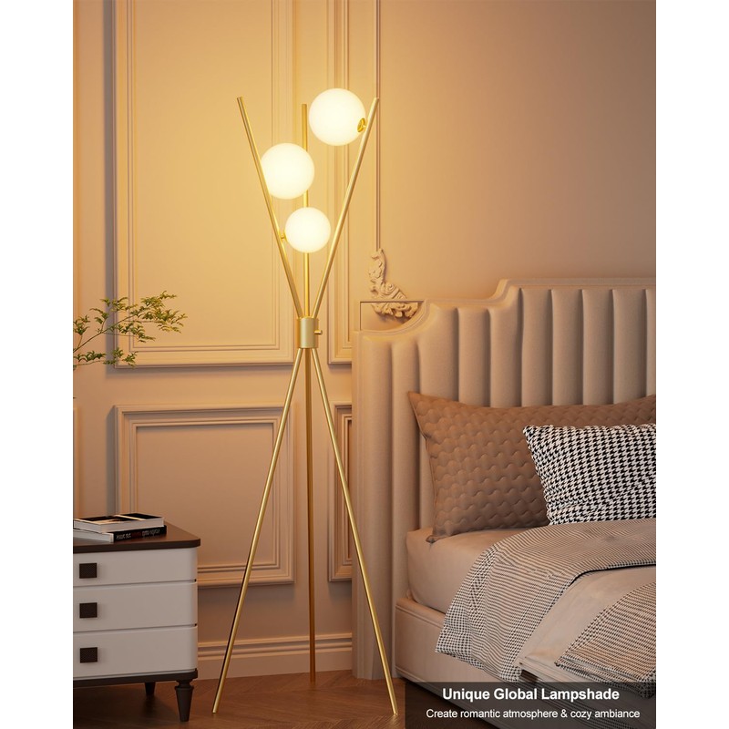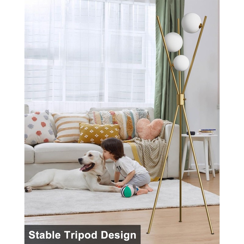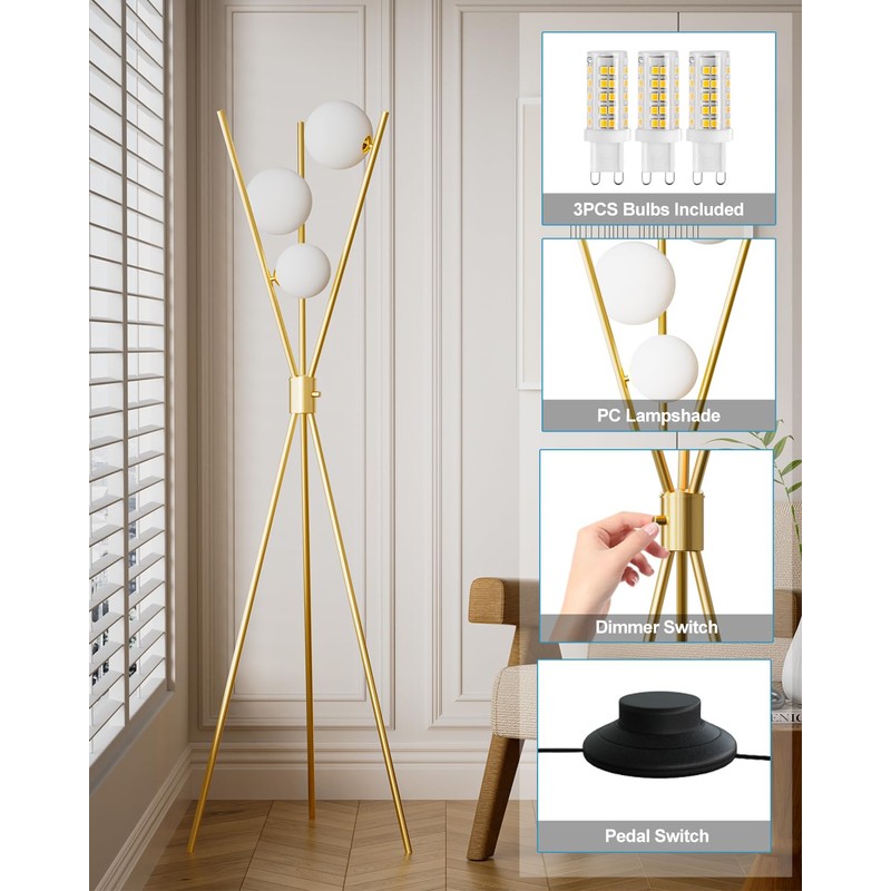 Lightdot Globe Dimmable Floor Lamp Gold Tripod Standing Lamps with 3PCS 3000K G9 Bulbs Stable Based Mid Century Modern Floor Lamp for Living Room/Bedroom