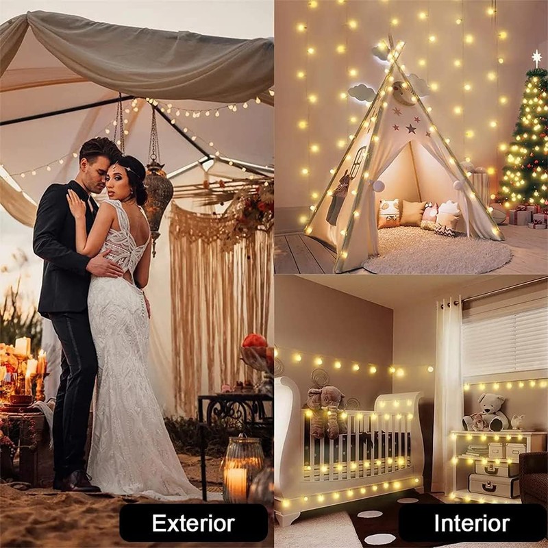 - 💡【DIVERSIÓN DE BRICOLAJE】: la serie de luces para exterior está hecha de alambre de cobre de alta elasticidad y se puede formar en cualquier forma para satisfacer sus necesidades de bricolaje y decorar cualquier escena que desee decorar. Las guirnaldas de luces son perfectas para decoraciones navideñas, jardines, patios, balcones, salones, fiestas, celebraciones familiares y de amigos