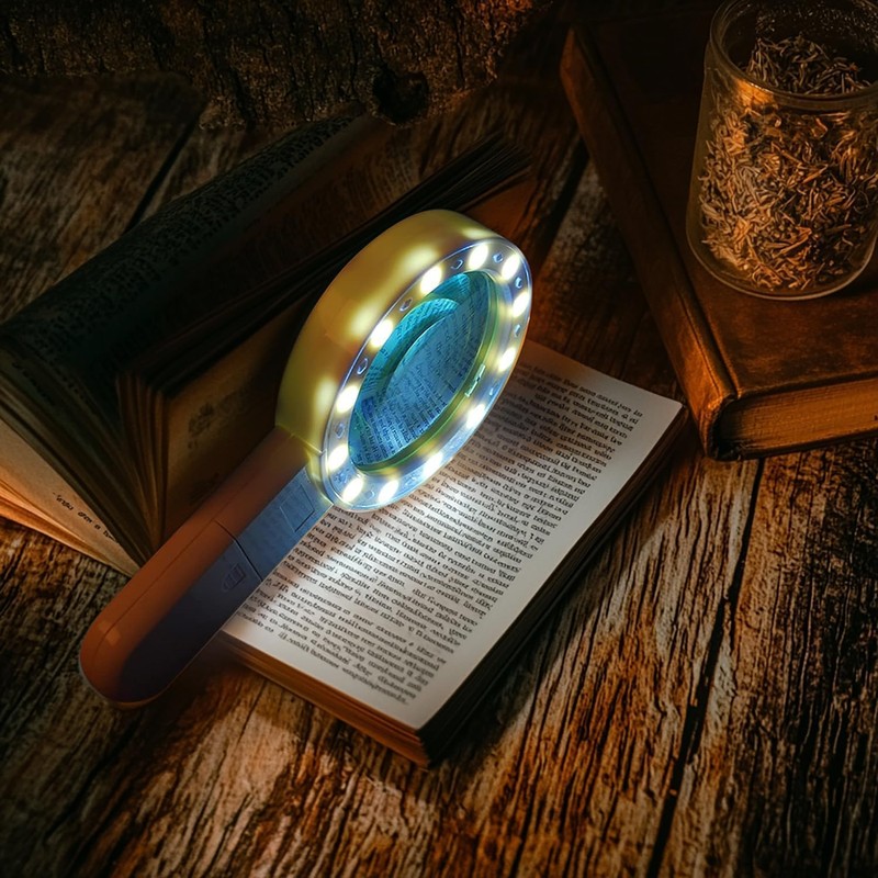 Lighted Magnifier, Illuminated Handheld Magnifier, Dehumidifier, 30x Double Glass Lens with 15 LED Lights.