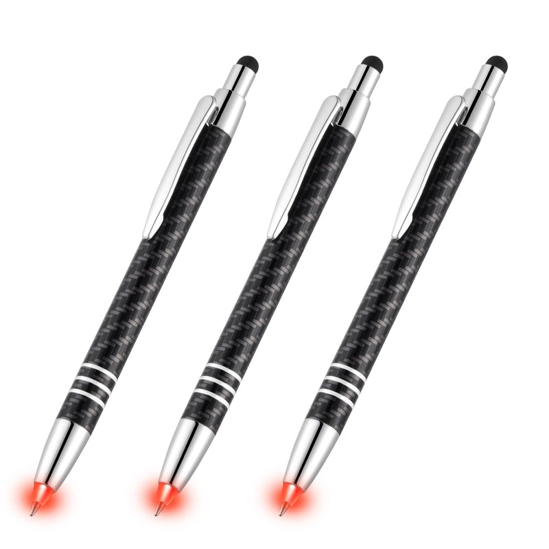 3 X Glovion Lighted-Tip Ballpoint Pens - Red Light