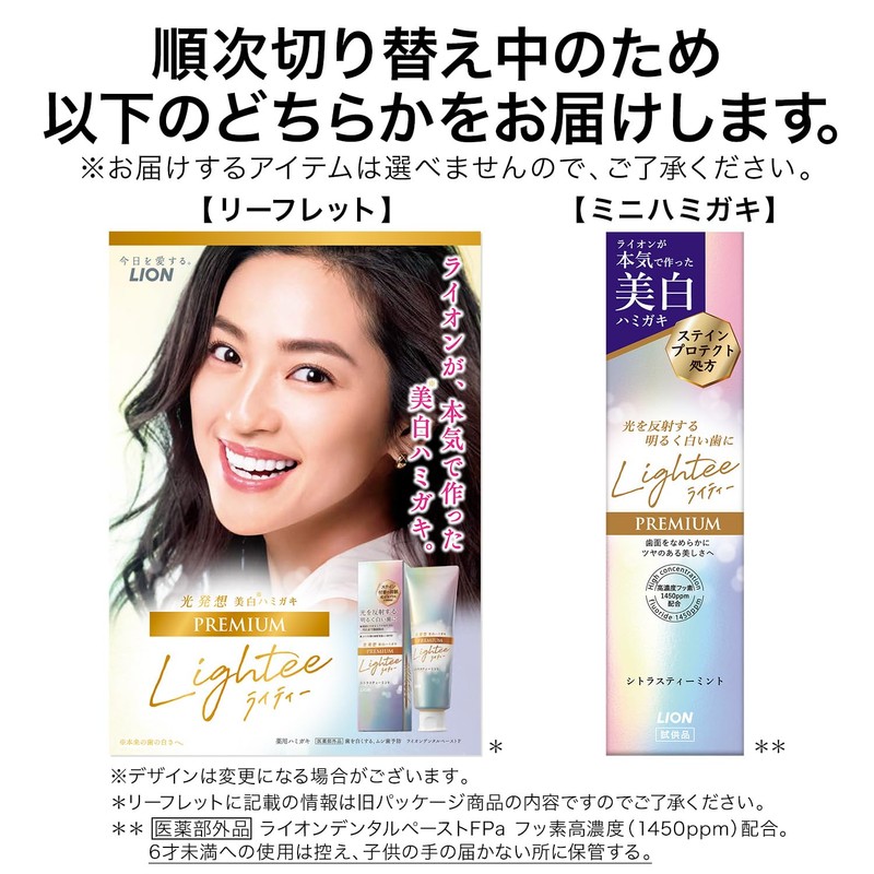 | Size: | 100g+おまけ付(リーフレットまたはミニハミガキ) |