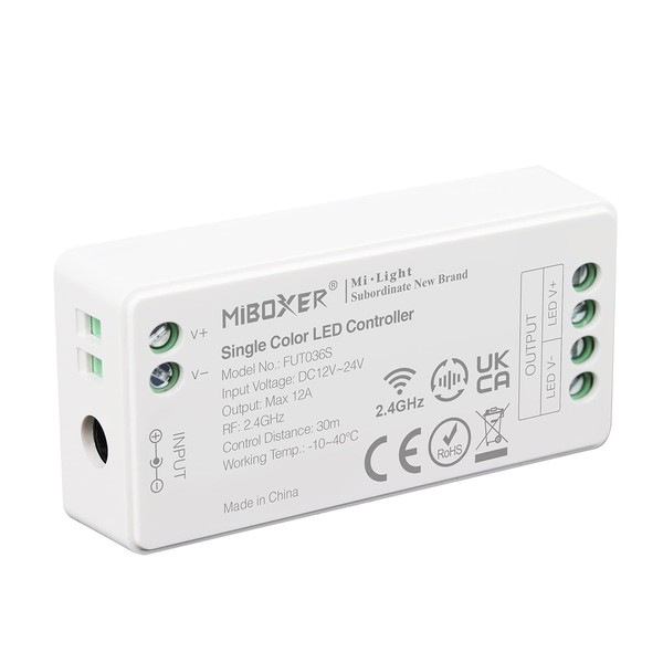 LIGHTEU®, Milight Miboxer 2.4GHz single color dimmer LED strip controller DC12V/24V output Max.12A, FUT036S
