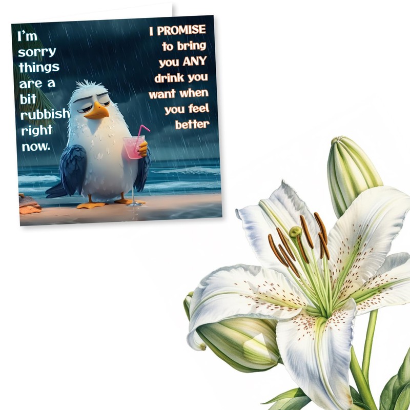 Lighthearted Support Card For a Loved One - I'm Sorry Things Are A Bit Rubbish Right Now - Get Well Soon - I Promise To Bring You Any Drink - For a Friend, Best Friend, Bestie, Partner