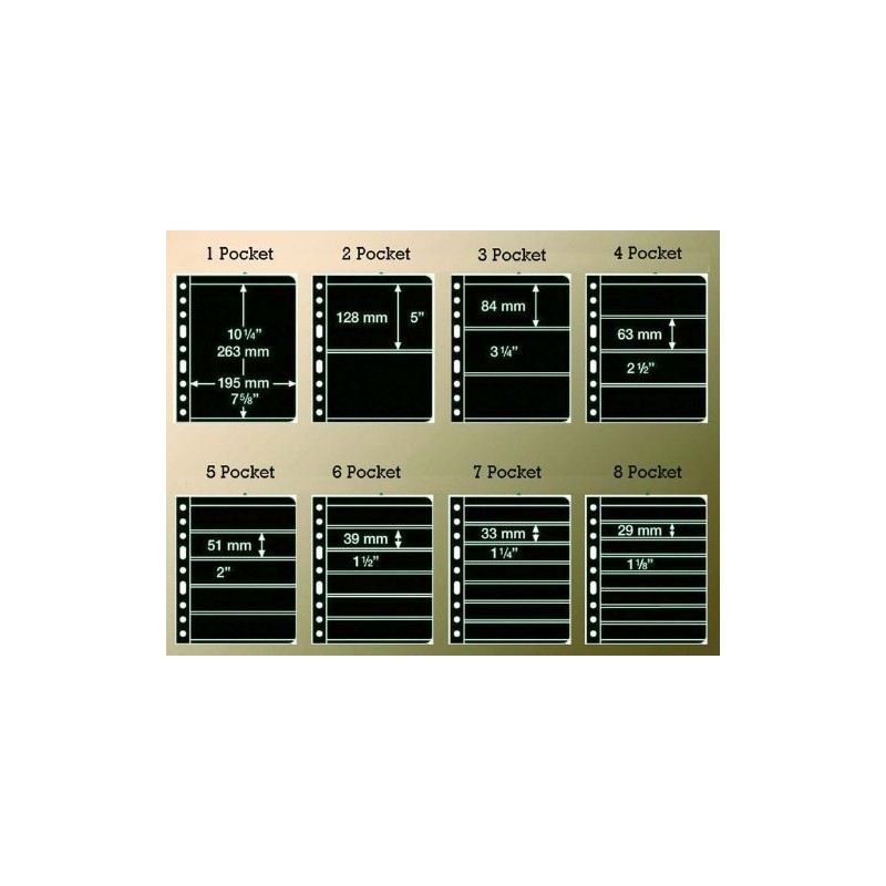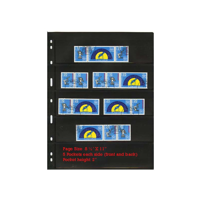 Vario is a fast, safe and economical way to store your stamps, blocks and covers. These pages more flexible than stockbooks because you can add or take out pages as needed and you can store items of different sizes. Page size: 8 1/2" X 11". Pages fit into any 3 ring binder. Your stamps will look neat and beautiful!!