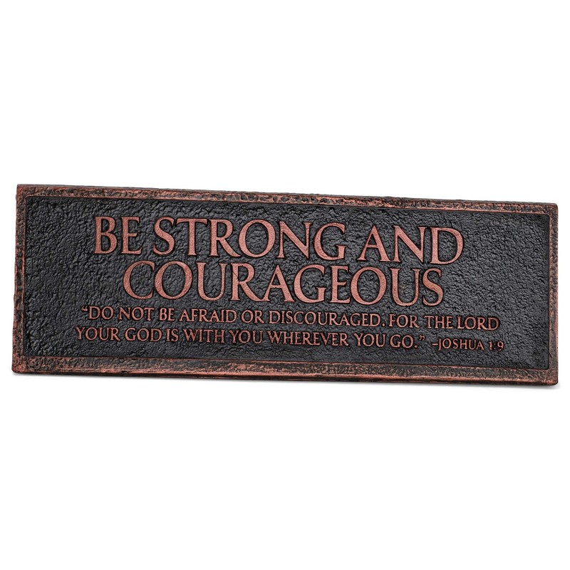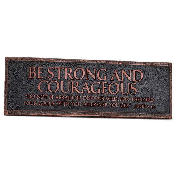 Lighthouse Christian Products Strong and Courageous Reminder Hammered Copper 6.5 x 2.25 Cast Stone Desktop Plaque