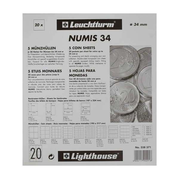 - Practical: the 5 transparent sleeves are ideal for coins with up to 34 mm diameter, e.g. Euro coins, commemorative coins, special coins, gold coins, silver coins, geo-coins and many more