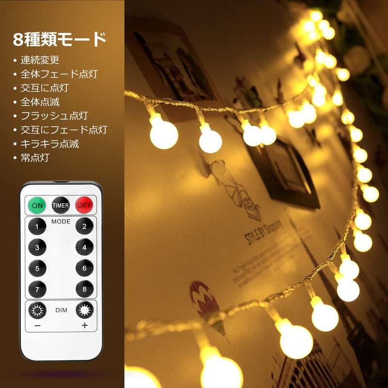 Lighting EVER イルミネーションライト led ガーランドライト キャンプライト 電池式 デコレーションライト フェアリーライト 8種点灯モード led電飾 5m 50球 電球色 防水 調光可能 【リモコンと電池ボックス 2WAYコントロール/8種類の点灯モード/明るさ無段階調整/タイム設定】 装飾 飾り付け キャンプサイト ポーチ デッキ アウトドア 庭 屋外