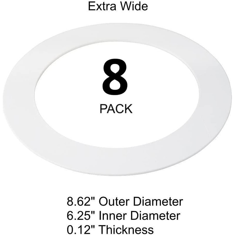 Lighting Labs 8 Pack Matte White Goof Trim Ring for 8" Inch Recessed Can Lighting Down Light, Outer Diameter 8.6 Inches, Inner Diameter 6.2 Inches