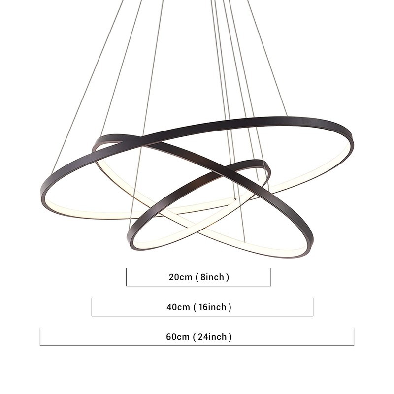 LightInTheBox Modern LED Chandelier 3 Ring Chandelier Dimmable Circular Dining Ceiling Pendant Light for Dinning Room Living Room 60+40+20cm (Black; Light Source: Stepless Dimming)