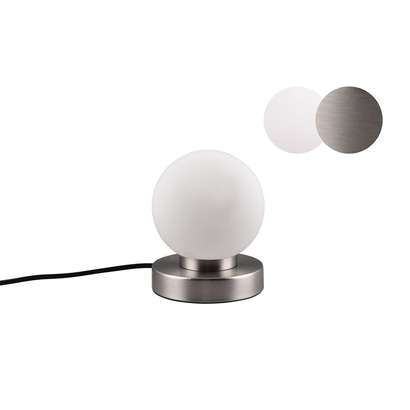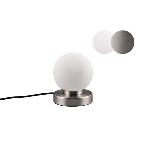lightling Pekka Table Lamp with Base Matt Nickel Metal Glass Shade White Touch Function Excl. 1 x E14 Max. 40 W Diameter 12 cm Height 15 cm