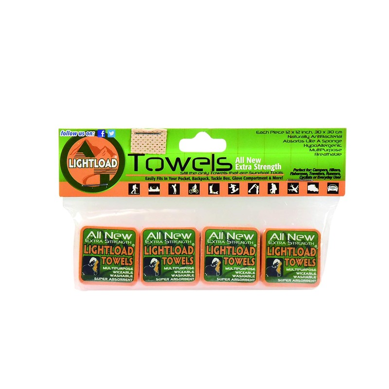 Lightload Towels X Strength Compressed for Easy Travel and Storage Superabsorbent Quick Dry Multiuse 12x12" .2 oz. (4 Pack)