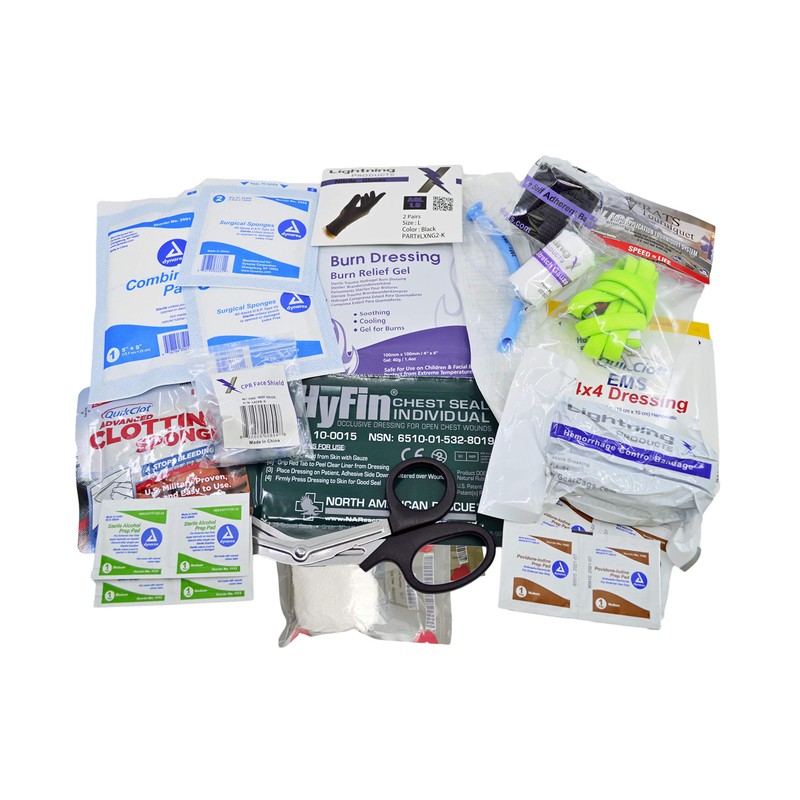 - GENUINE QUIKCLOT GEAR: Our first aid kit includes genuine emergency gear including QuikClot 1st Response sponge, QuikClot EMS gauze pad and a HyFin chest seal.
