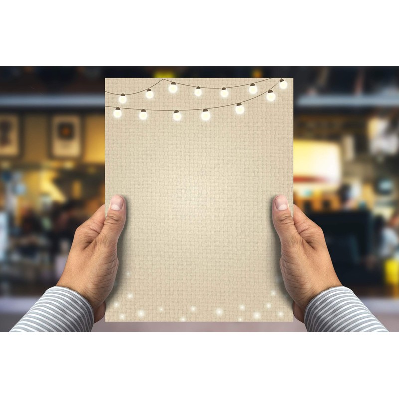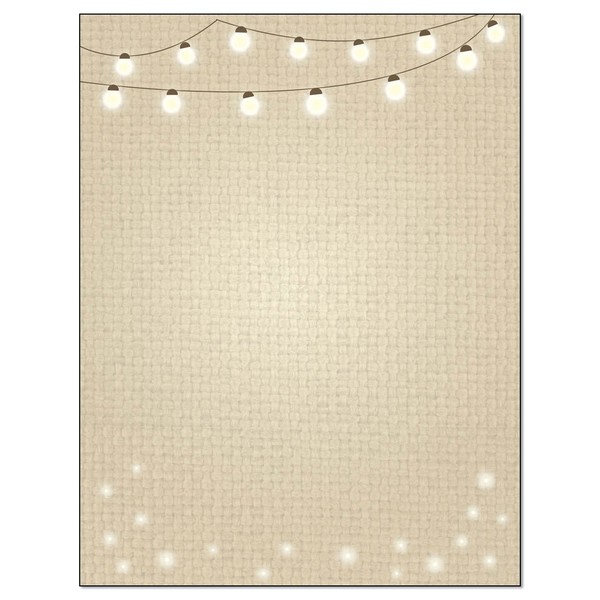 Stonehouse Collection | Rustic Stationery | Rustic Letterhead Paper | 8.5 x 11 | USA Made | 60 Sheets | String of LIghts Letterhead (String Lights)