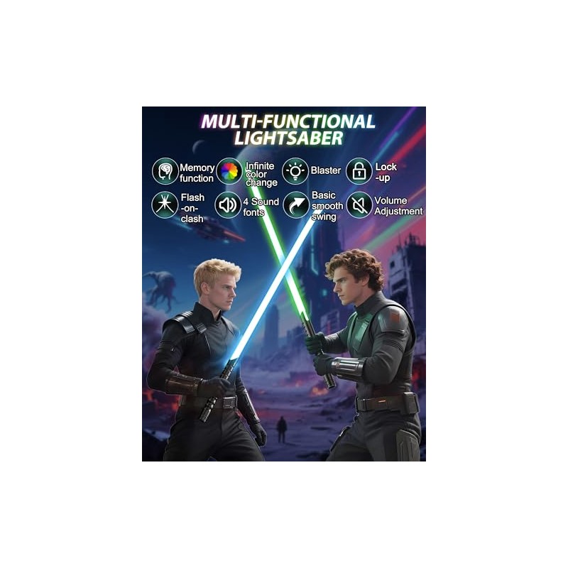 【Realistic Combat Experience】Lightsabers for kids - Our light sabers is equipped with the latest sensors, when collides with an object, it will emit exclusive sound effects, the sound is more coherent and sensitive, making you feel like you are in a real movie. Whether you are playing as a Jedi or a Sith, both can let you deeply immerse yourself in the world of the character
