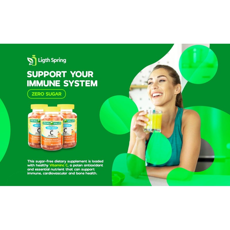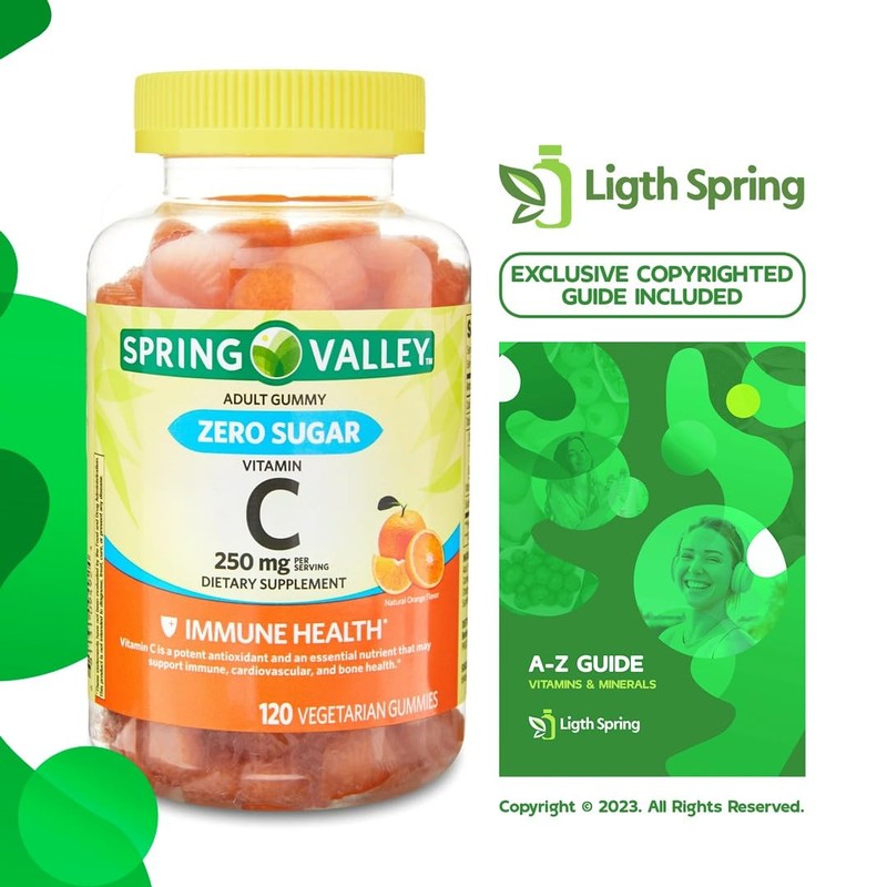LightSpring Spring Valley Zero Sugar Vitamin C Gummies Dietary Supplement, 250 mg, 120 Ct Bundle with Exclusive Vitamins & Minerals - A to Z - Better Ligth&Spring Guide