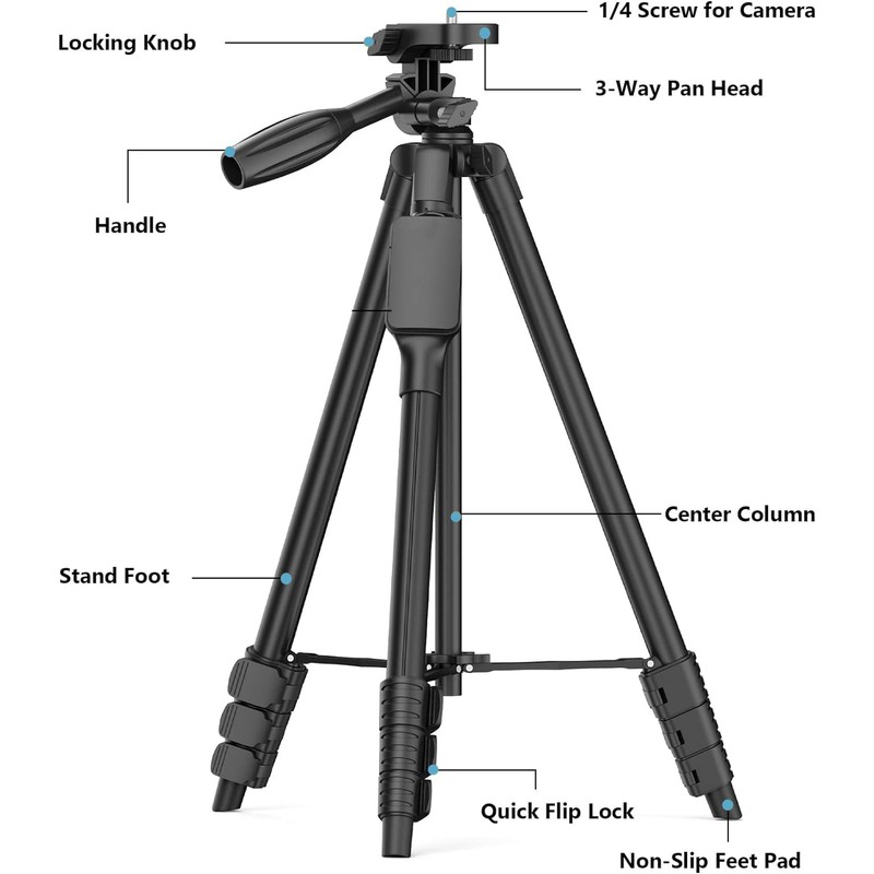 Lightweight 57-inch Camera Tripod for Canon EOS Rebel T3, T3i, T4i, T5, T5i T6i, T6s, T7, T7i, EOS 60D, EOS 70D, EOS 80D, EOS 5D Mark III, EOS 6D, EOS 7D Mark II, EOS-M, EOS-M3, EOS-M50 Cameras