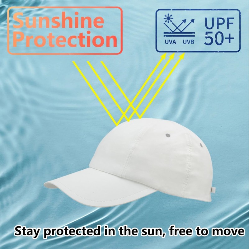 Lightweight Folding Baseball Cap UPF 50+ Sun Protection & Cooling Performance, Unisex One Size for Running Golf Workouts. (US, Alpha, One Size, White)