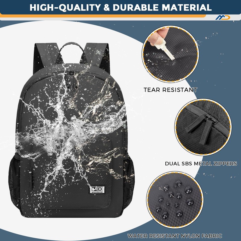 - ✅【WATER-RESISTANT & DURABLE】 The waterproof backpack is made from highly rip and water-resistant nylon fabric, durable abrasion resistant SBS metal zipper available, which provides strength and long-lasting performance with minimal weight. Breathable mesh shoulder straps with plentiful sponge padding made it effectively reduce the pressure of the shoulders. Adjustable longshoulder straps allow users to adjust the length easily and lock firmly.