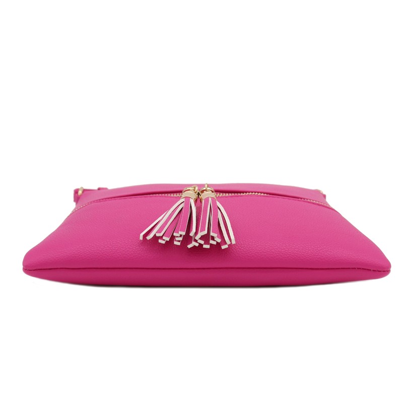 Lightweight Medium Crossbody Bag with Tassel (Fuchsia)