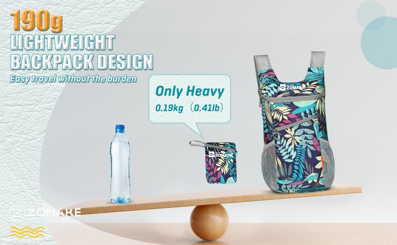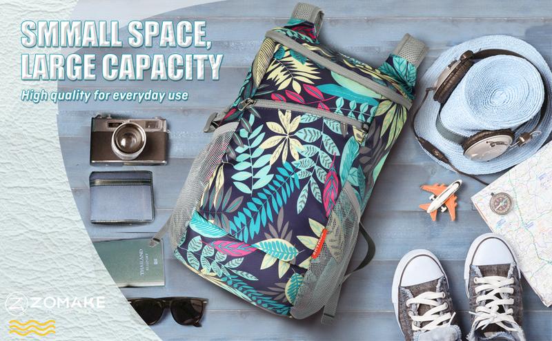 • [WATERPROOF DESIGN]: Our packable backpacks are made of waterproof polyester material, which is waterproof, so you don't have to worry about your items getting drenched in the gross rain during outdoor hiking trips and activities (waterproof daypack is not equivalent to an umbrella, and it is not recommended for prolonged exposure to heavy rain)