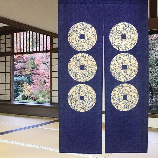 LIGICKY Japanese Style Noren Doorway Curtain Six Coins Pattern Tapestry for Home Decoration Blue 33.5"x59"