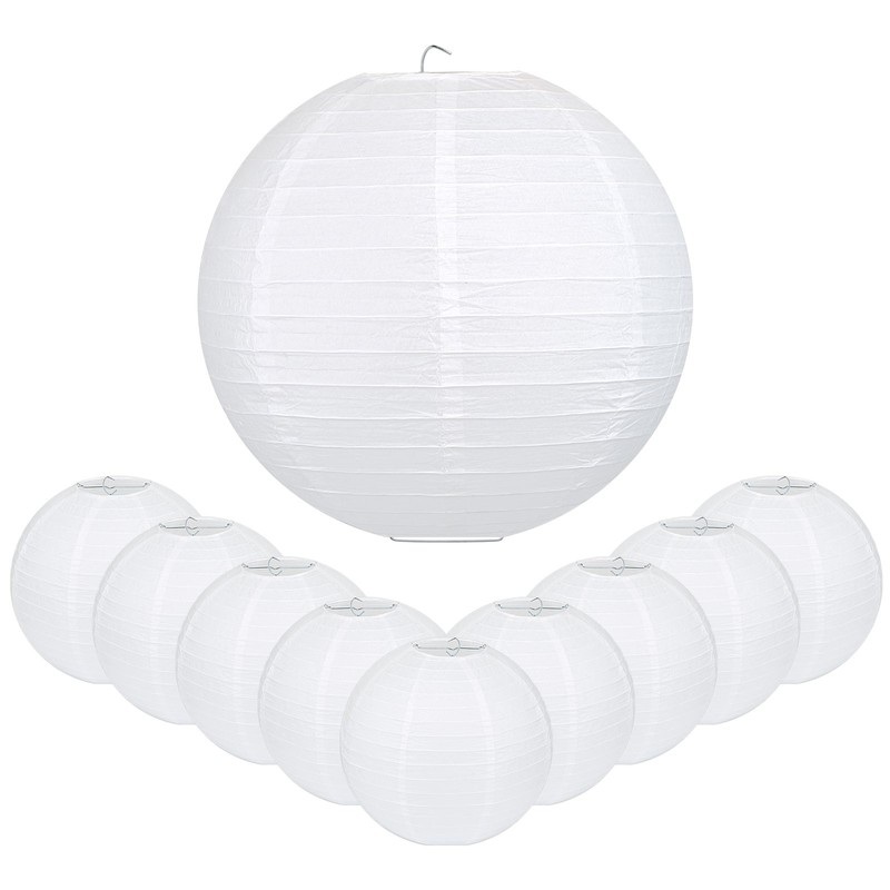 LIHAO 16 Inch White Round Paper Lanterns (10 Pack)