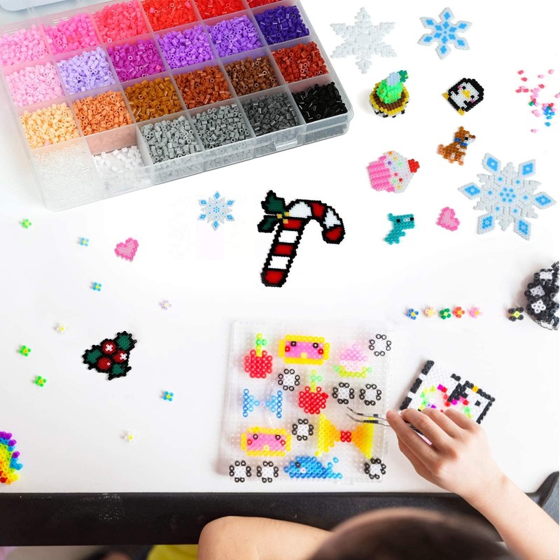 LIHAO LIHAO 12000 Bügelperlen Set Steckperlen in Sortierbox Kinder DIY Perlen für Bügelperlen Platte (2,6 mm, 24 Farben, Dunkel Stil)