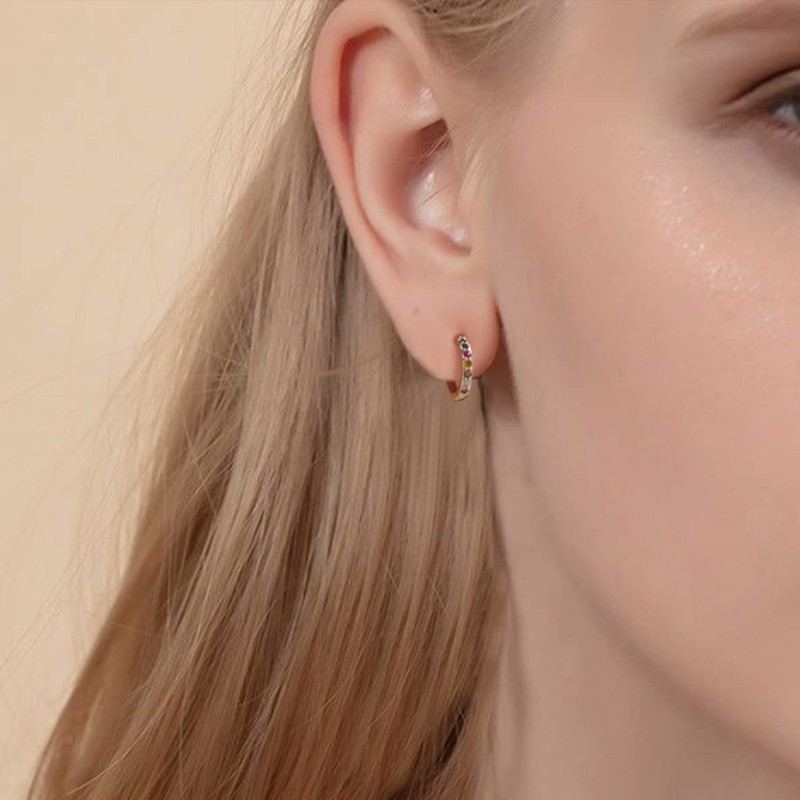 | Color: | 3 pairs rose gold + colourful cubic zirconia |