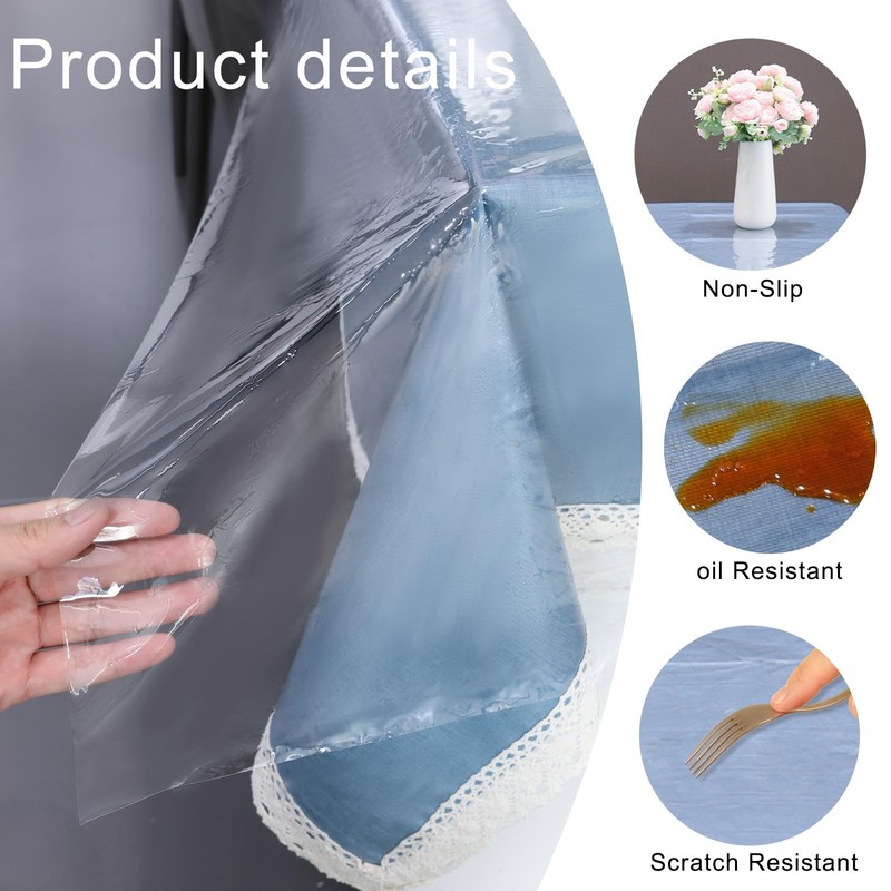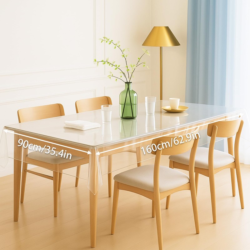 - Durable and protecting: the transparent tablecloth allows you to see your dining table or other furnishings protected, which means that the transparent tablecloth protects your table top without hiding its beauty. You can simply wipe the transparent table film with a damp cloth and it looks like new again.