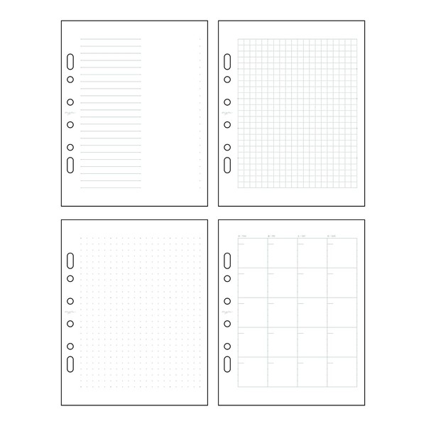 - Set items: Half ruling, 0.2 inch (5 mm) squares, dot squares, free monthly