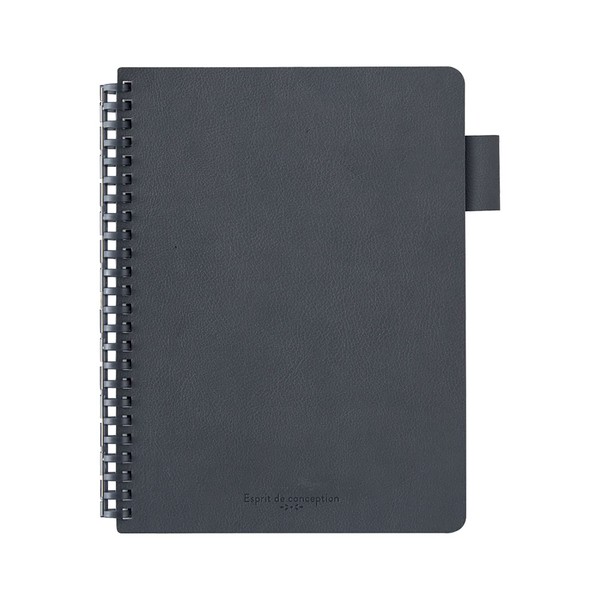 Lihit Lab Open Ring Notebook, Faux Leather Cover, A5, Gray, N2993-27