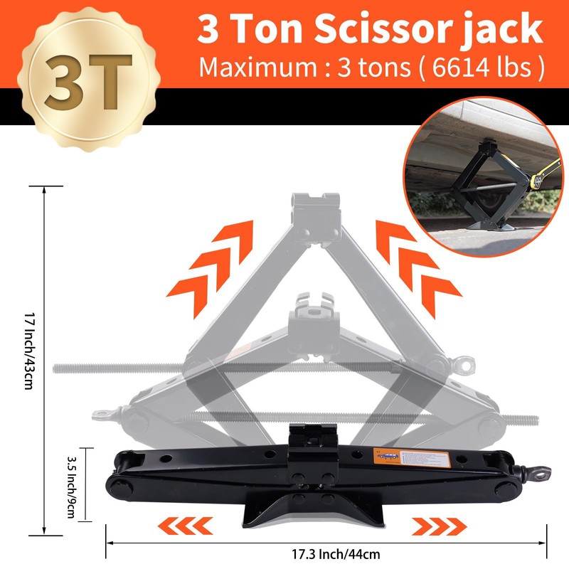 LIIAMOAR Scissor Jack Set 3 Ton(6614 lbs) Car Jack and Stand Kit, Heavy-Duty Scissor Jack for Car Lifting, Portable Tire Jack Kit with Lug Wrench Tire Repair Kit for Auto/SUV/MPV/Trucks