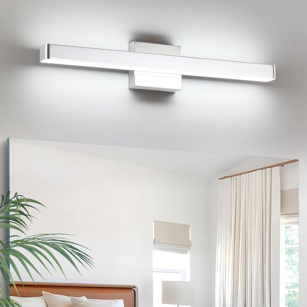 - 【Modern Versatile Design】Sleek, minimalist style suitable for bathrooms, bedrooms, and living rooms. With two-sided light, it features clear contours, cool white 6000K lighting, and a chic aesthetic for contemporary renovations.