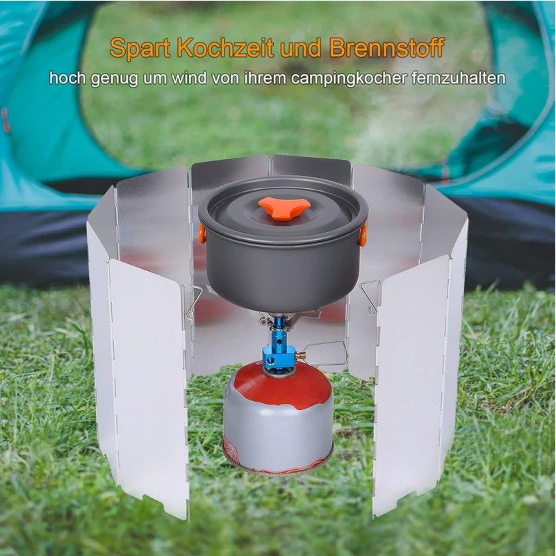 - ENHANCED EFFICIENCY The foldable aluminum windshield protects your camping stove from wind and helps shorten cooking times to make outdoor cooking easier