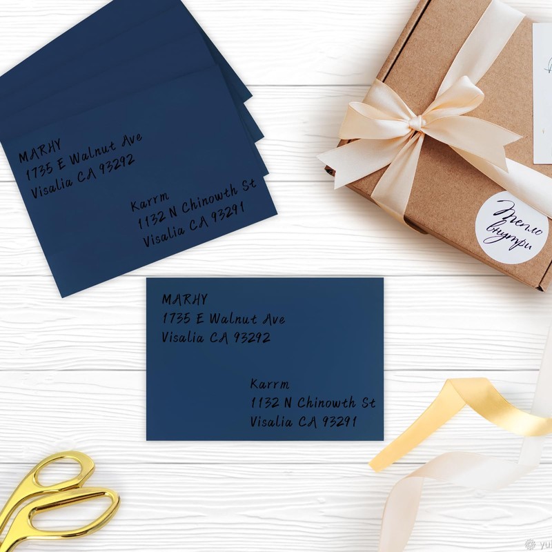 These A7 envelopes feature a navy blue color. The envelopes kit contains 50 pieces 5.24 x 7.24 Inches navy blue envelopes, great for birthday, graduation, baby shower, wedding invitations and all kinds of invitation cards