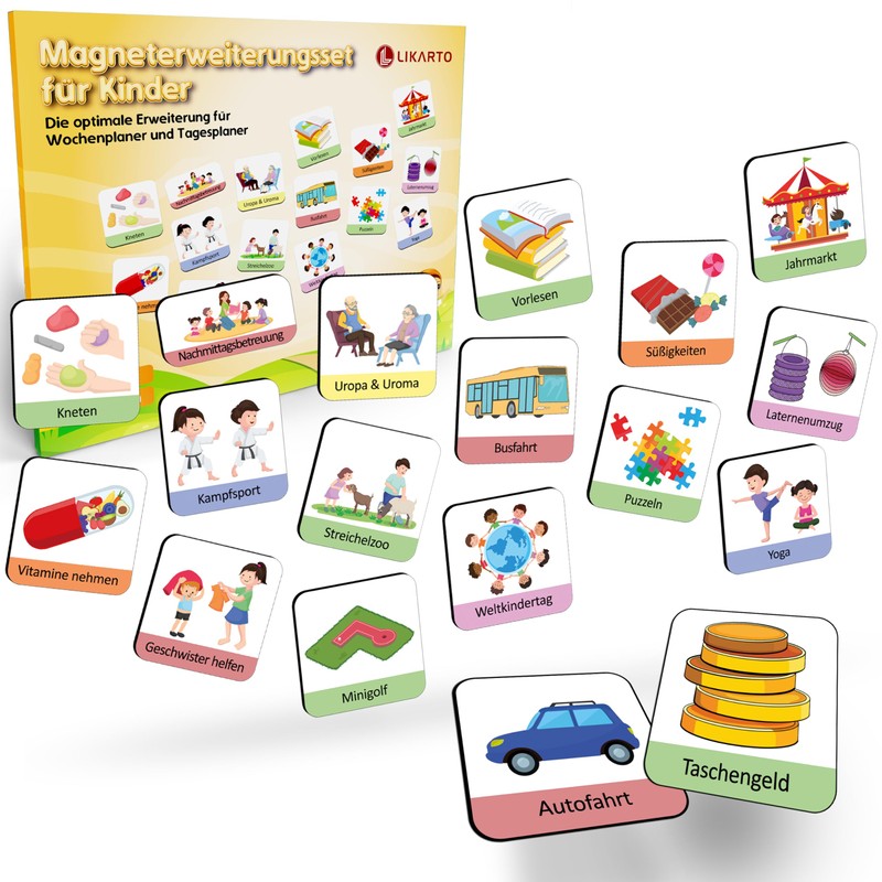 - Easy to use for children: this expansion set makes planning the week and day easy to understand. The magnets are easy to understand due to the child-friendly design and easy to grip thanks to the size (3.5 x 3.5 cm) for children