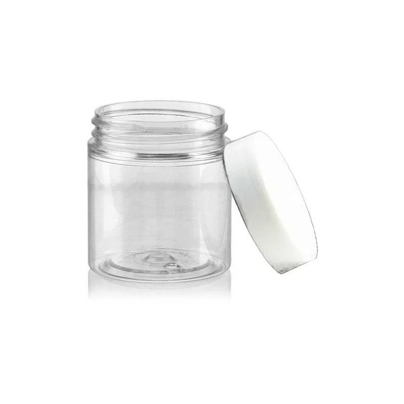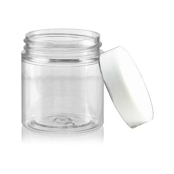 Frasco tarro pomadero de 40 ml o gr de plástico, color transparente, con tapa estética color blanco. Para uso cosmético, farmacéutico, doméstico. grado farmacéutico. En Perfectas condiciones, nuevo.