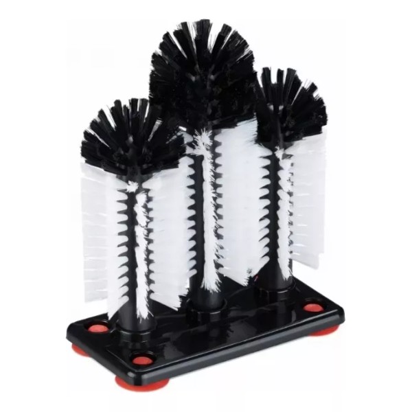 Cepillo para lavar tres vasos a la vez con chupones que se adhieren a la superficie