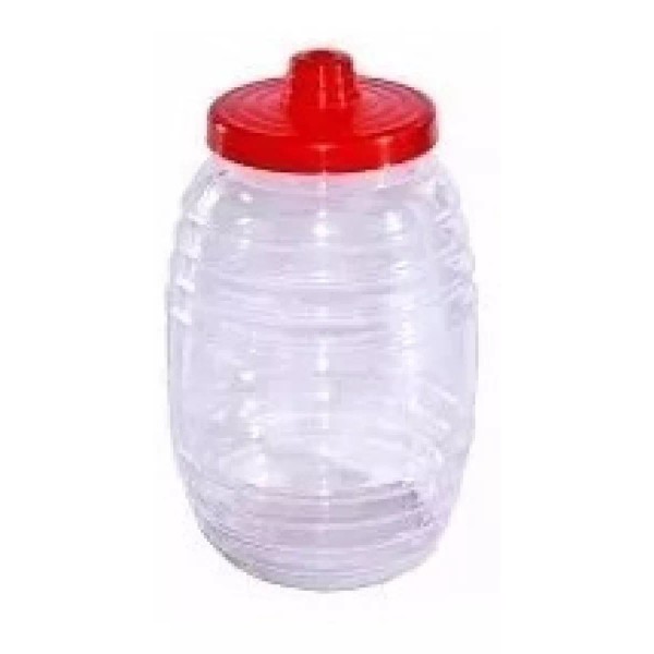 Vitrolero de plástico de alta resistencia de 5 litros, ideal para preparar aguas frescas con tapa de rosca para mejor sellado.