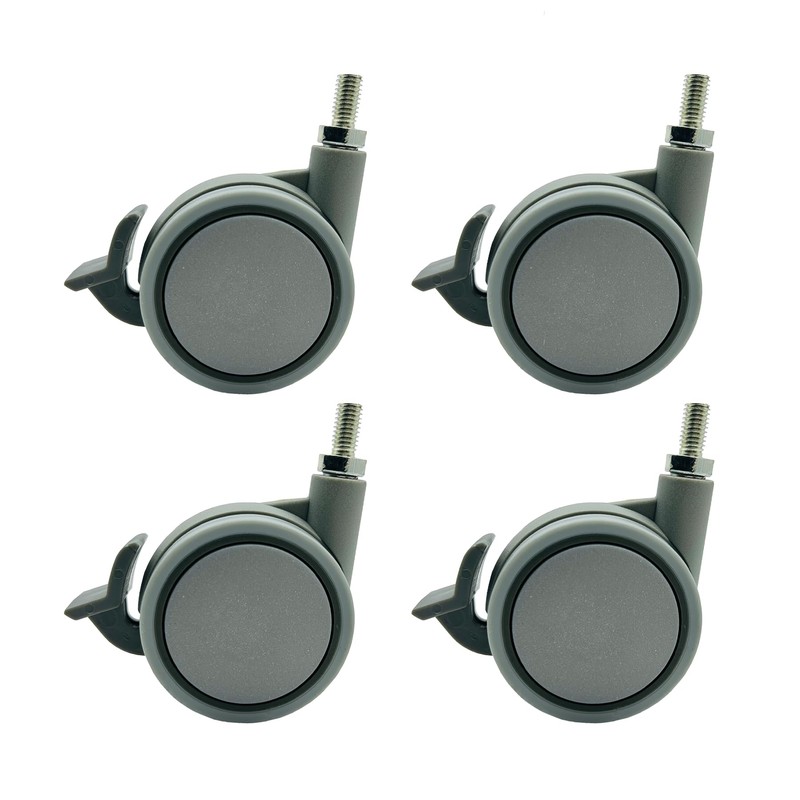 LIKERAINY Nylon Swivel Castors for Furniture with Brake FC3511A with Thread Attachment Replacement for Furniture Roller Swivel Castors Cabinet Castors Furniture Castors Table Castors Wheel Diameter 60