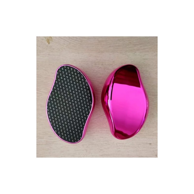 This is a uniquely shaped foot grinder with a grinding head. It has an irregular droplet shape as a whole, and the shell is a bright blue-green color with a metallic luster texture, appearing fashionable and exquisite. The grinding head is black in color and covered with fine frosted particles on the surface, which should be used for friction to remove dead skin and calluses on the feet. From the dimensions, it measures approximately 10.8cm in length and 6.5cm in width, making it compact and portable for easy handheld operation.