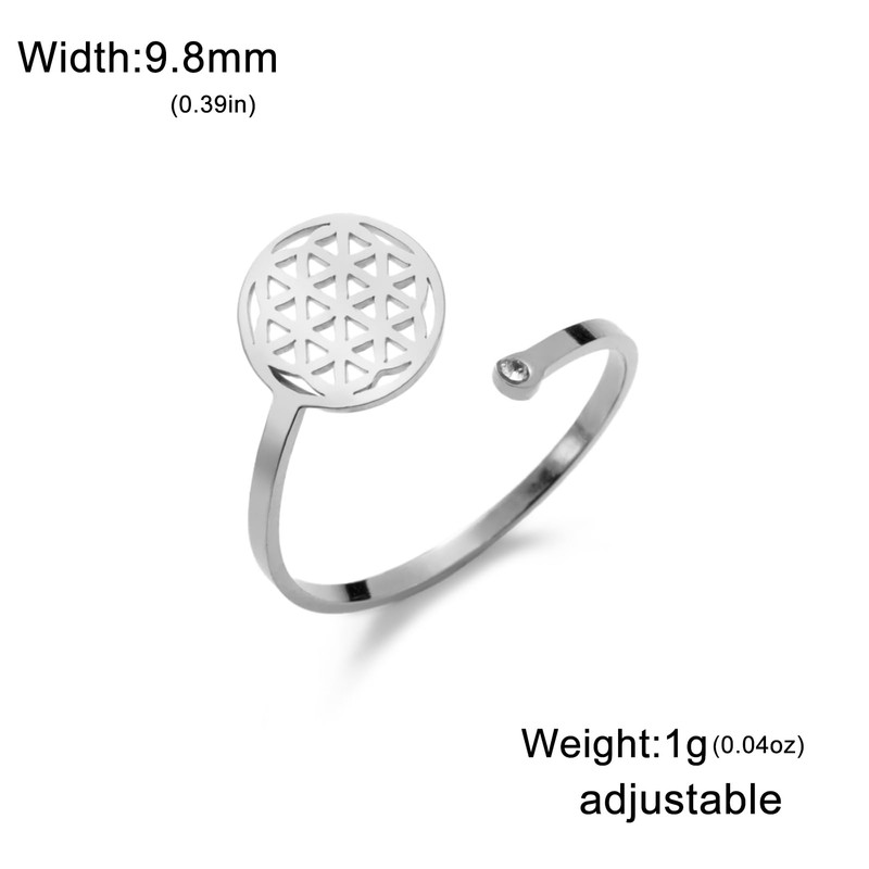 LIKGREAT Flower of Life Ring Stainless Steel Adjustable Ring Spiritual Healing Geometric Symbol Amulet Jewellery For Women (Sliver)