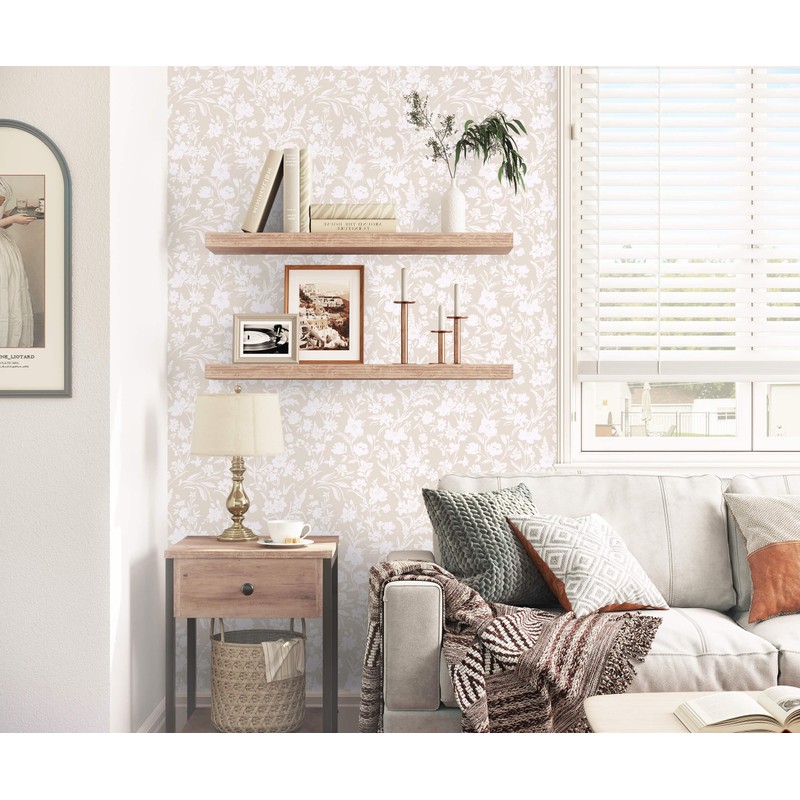 LiKiLiKi Peel and Stick Wall Paper Khaki and White Floral Wallpaper Modern Boho Self Adhesive Waterproof Removable Contact Paper for Living Room Bedroom Bathroom Cabinet Kitchen Vinyl Roll 17.3"x393"