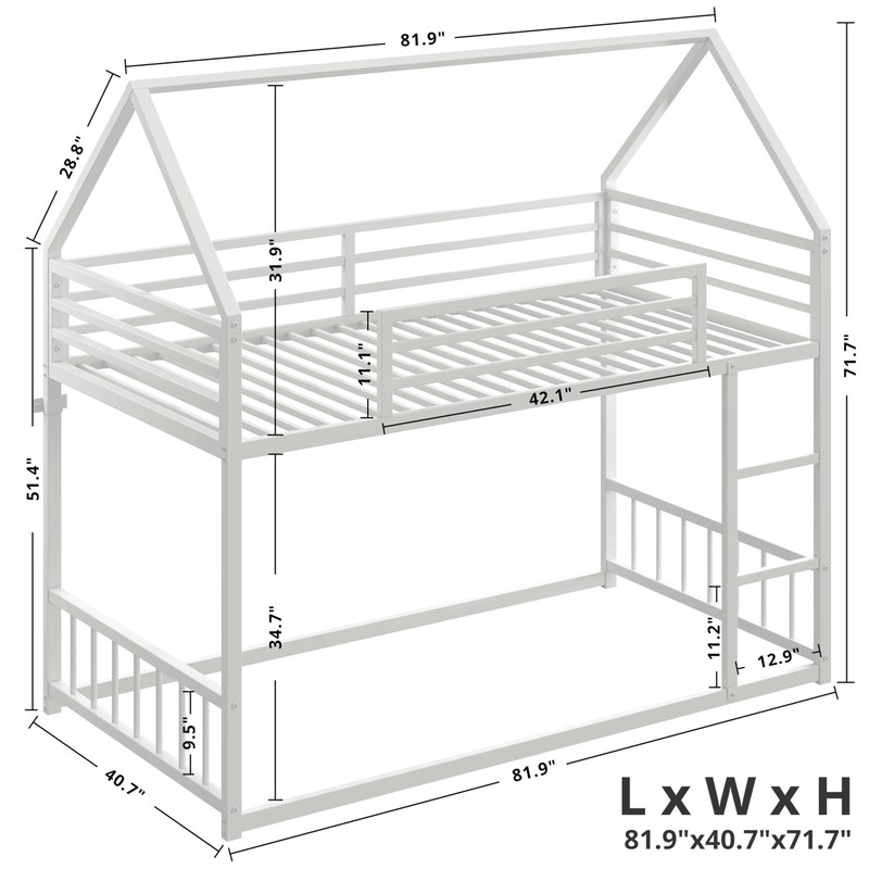 - Dimension: measuring 81.9"L x 40.7"W x 71.7"H, our low bunk bed features a longer length that gives you a better sleeping experience.