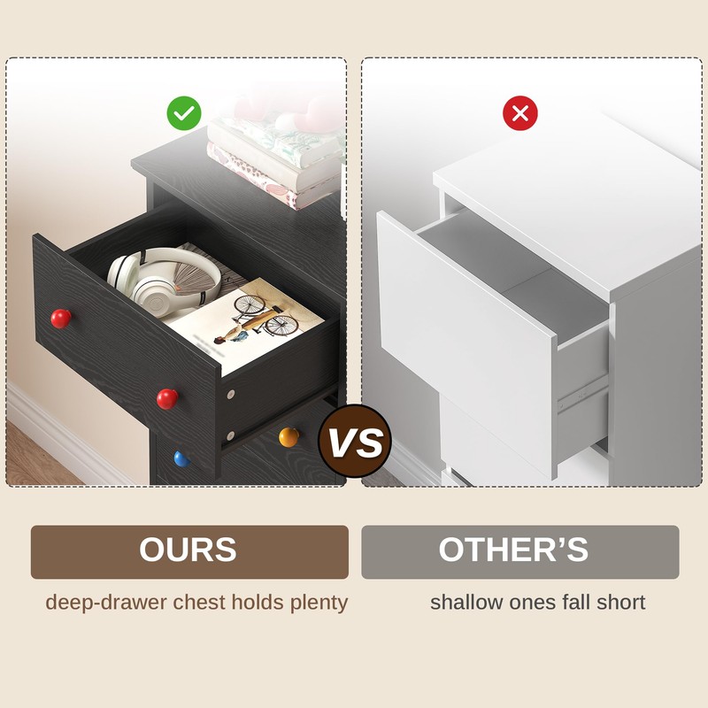 - MOOD - ENHANCING HANDLE OPTIONS: The wood dresser's bright, colorful handles evoke joy and positivity, making organizing appealing. Ideal for bedroom, for a lively vibe. Prefer classic. The versatile black handles are at your disposal. comes with 12 colorful (4 yellow, 4 red, 4 blue) and 12 black handles.
