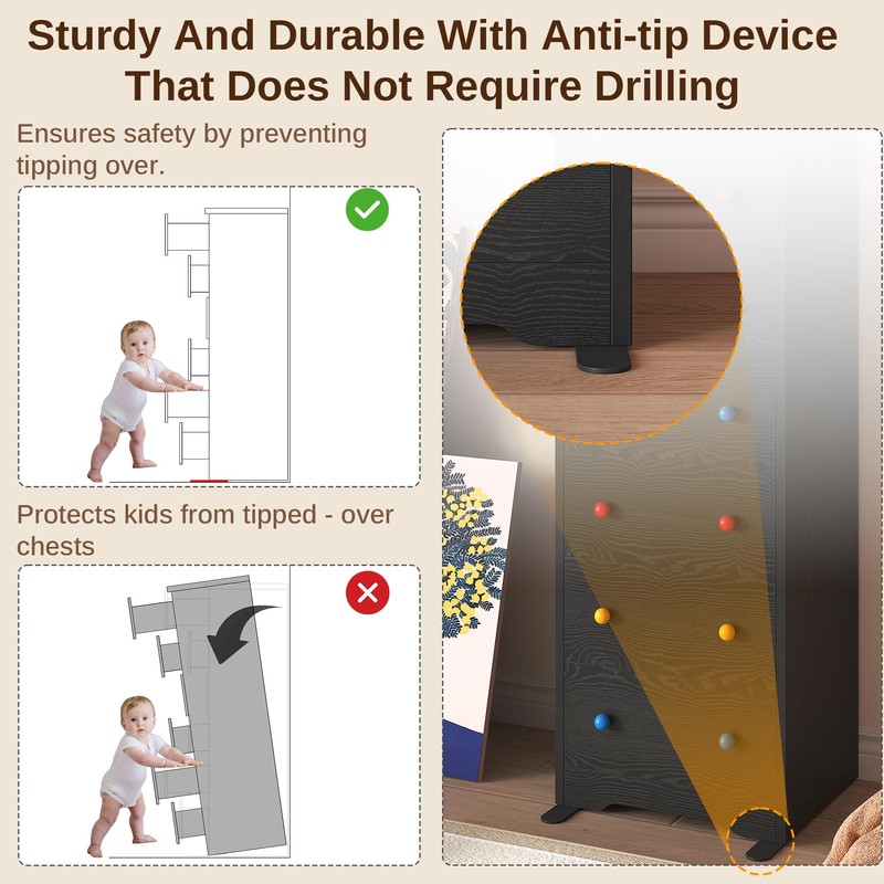 - SAFE & DURABLE CONSTRUCTION: Crafted from high-quality MDF, this dresser is built to withstand the test of time. An anti-tip device ensures stability, providing a safe environment for your family.