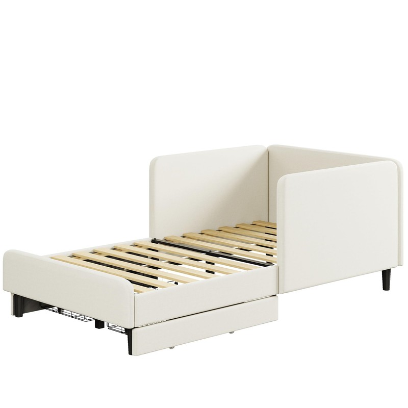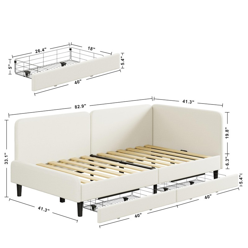 LIKIMIO Twin XL Daybed with Headboard, Corner Bed Frame with Bed Rails and Storage Drawers, Solid Support, for Bedroom Guest Room, Cream